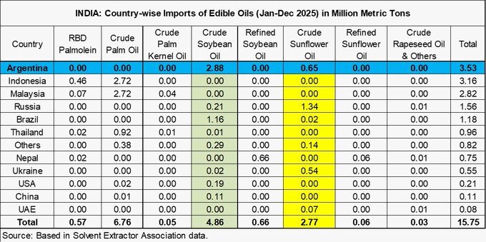 India importa más de 15,7 millones de toneladas de aceites vegetales por año, lo que la convierte en el mayor mercado consumidor del mundo. En ese contexto, Argentina logró consolidarse como un proveedor clave y dominante, especialmente en aceite de soja, producto en el que el país ocupa un lugar central dentro de la matriz de abastecimiento del país asiático.