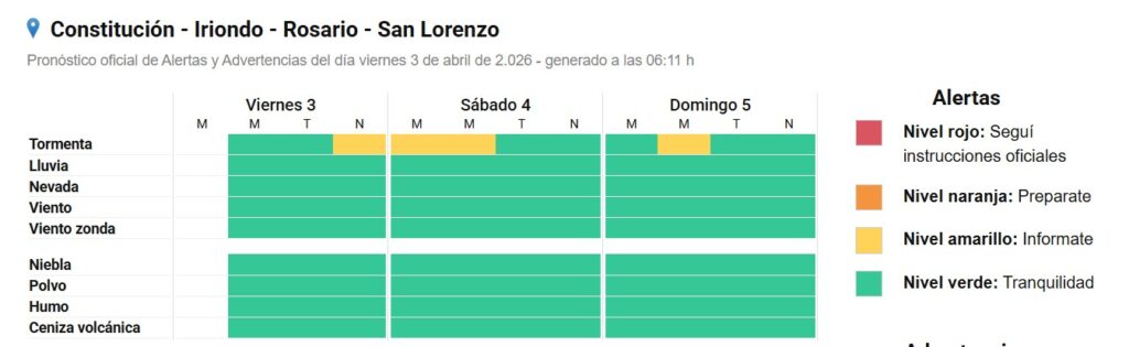 La región transita el fin de semana largo de Semana Santa bajo condiciones meteorológicas inestables, con altas temperaturas, humedad extrema y un alerta vigente por tormentas fuertes. Según informó el Servicio Meteorológico Nacional, rige un aviso de nivel amarillo desde la madrugada de este viernes que, en principio, se mantendría hasta la mañana del sábado.