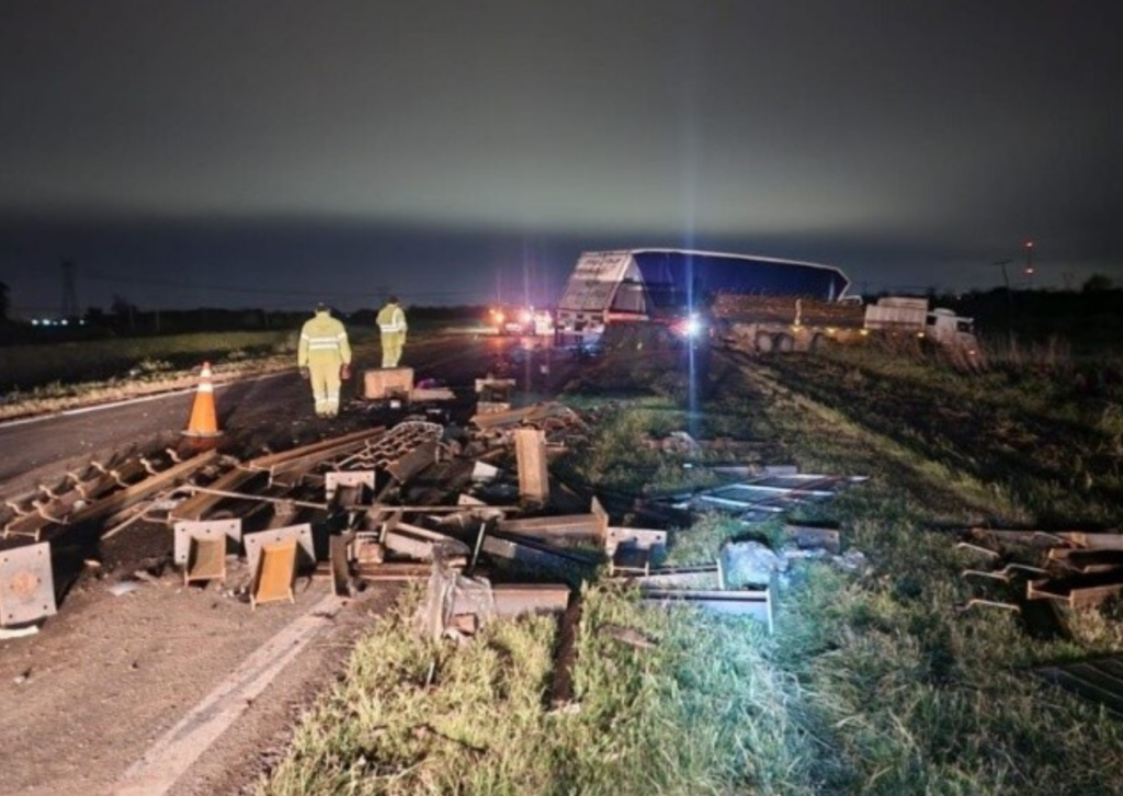 “El choque fue por alcance. Participaron dos camiones, uno con cereal y otro llevaba material peligroso, tolueno”, precisó.