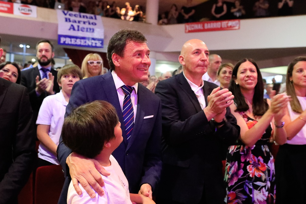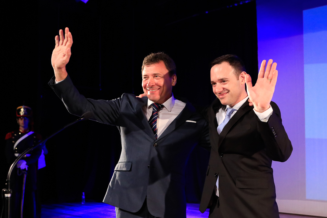 Luego, el jefe del Ejecutivo subió al escenario donde lo esperaba Ore, quien le preguntó: “Doctor Leonardo Raimundo, ¿juráis por Dios y por la Patria desempeñar fiel y legalmente el cargo de intendente municipal?, a lo que el mandatario respondió con un enérgico: “Sí, juro!”, al que sucedió una estruendosa ovación.