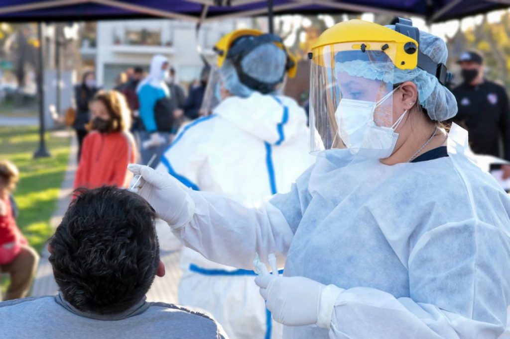 Profesionales de la Secretaría de Salud efectuaron un gran número de hisopados y tests de anticuerpos, en la plaza San Martín. En la jornada estuvieron presentes el intendente Leonardo Raimundo y el concejal Gustavo Oggero.