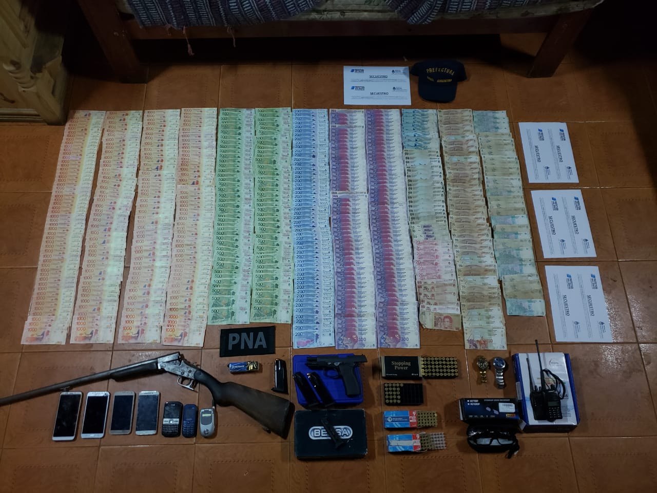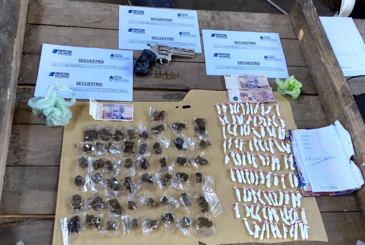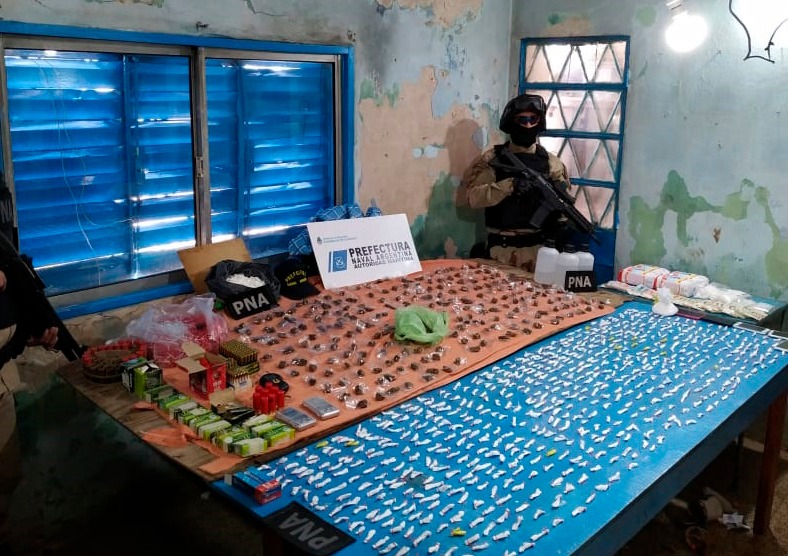 Además, se incautaron balanzas de precisión, celulares, armas de fuego, proyectiles, más de 520.000 pesos en efectivo y cheques y documentación vinculada a la causa.