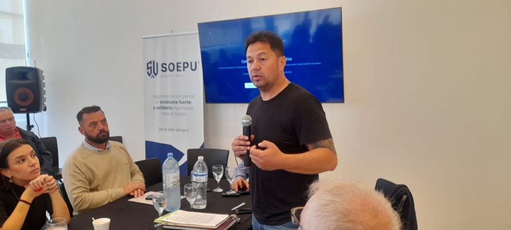 De la reunión participaron los ministros de Trabajo, Empleo y Seguridad Social, Juan Manuel Pusineri; y de la Producción, Ciencia y Tecnología, Daniel Costamagna; junto con el secretario general del Sindicato de Obreros y Empleados Petroquímicos Unidos (Soepu), Mauricio Brizuela.