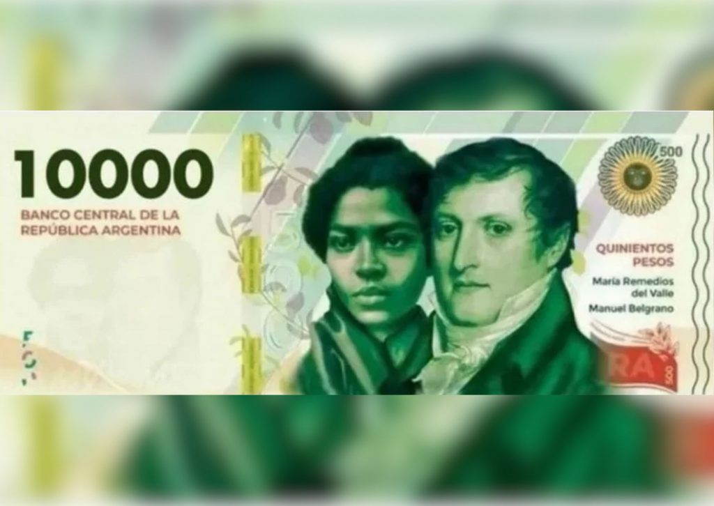 El nuevo billete de $10.000 tiene las imágenes de Manuel Belgrano y de María Remedios del Valle, heroína de la Guerra de la Independencia. En tanto, en el adverso figura la recreación artística de la escena de la Jura de la Bandera realizada el 27 de febrero de 1812.