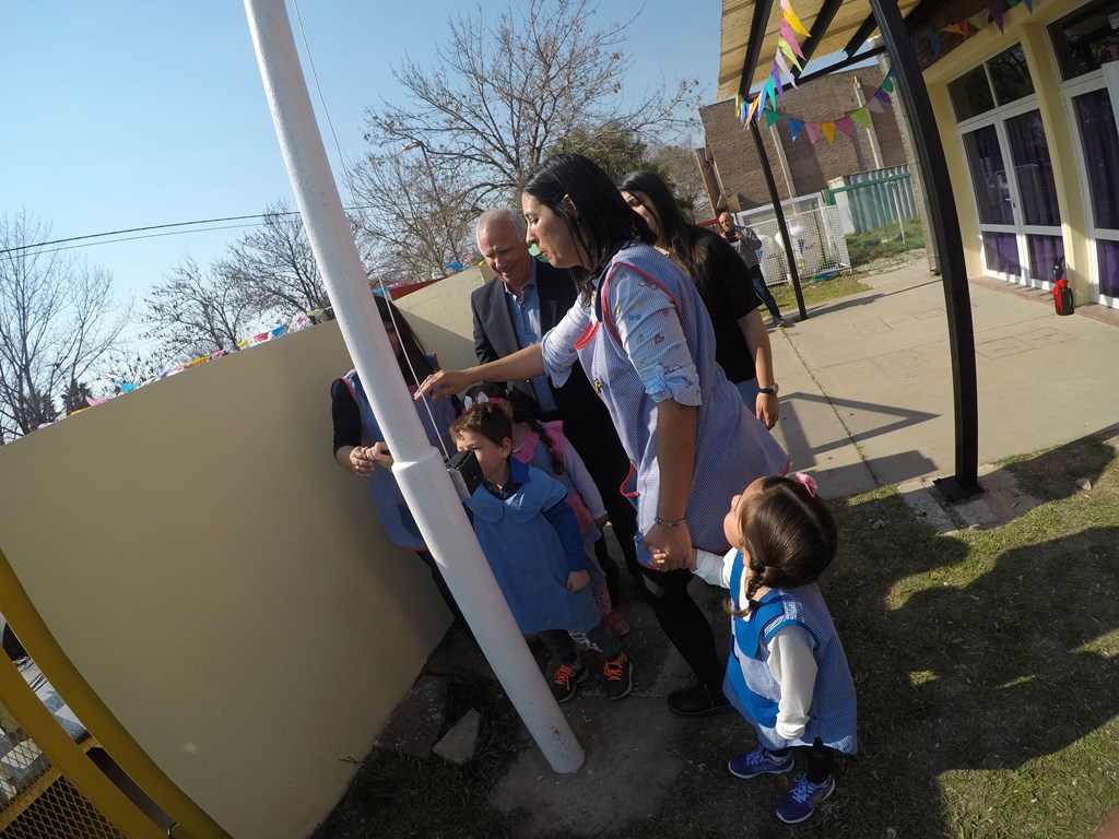 Autoridades municipales y provinciales, los siete docentes de salas, familias y vecinos, y los 140 chicos que concurren al jardín, el  intendente y Daiana Gallo Ambrosis, Delegada Región VI del Ministerio de Educación provincial, estuvieron acompañados por los concejales de la ciudad. De Grandis destacó el compromiso del municipio para la educación y sobre este proyecto educativo que contó desde sus orígenes con el acompañamiento del ejecutivo municipal en el marco de todo el crecimiento que vivió el barrio San Sebastián.