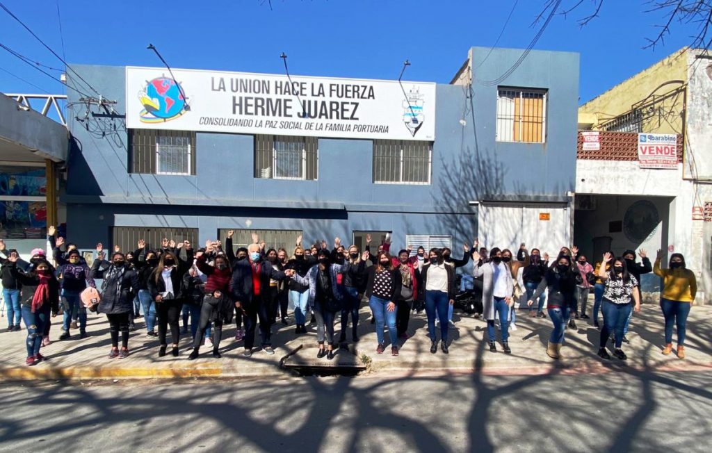 El dirigente portuario Herme Juárez volvió a la cooperativa y fue recibido como una estrella de rock. Afuera del edificio, lo esperaban estibadores, trabajadores del centro de máquinas, administrativos y el gremio de los vigiladores, que le pedían tomarse fotografías y lo abrazaban.