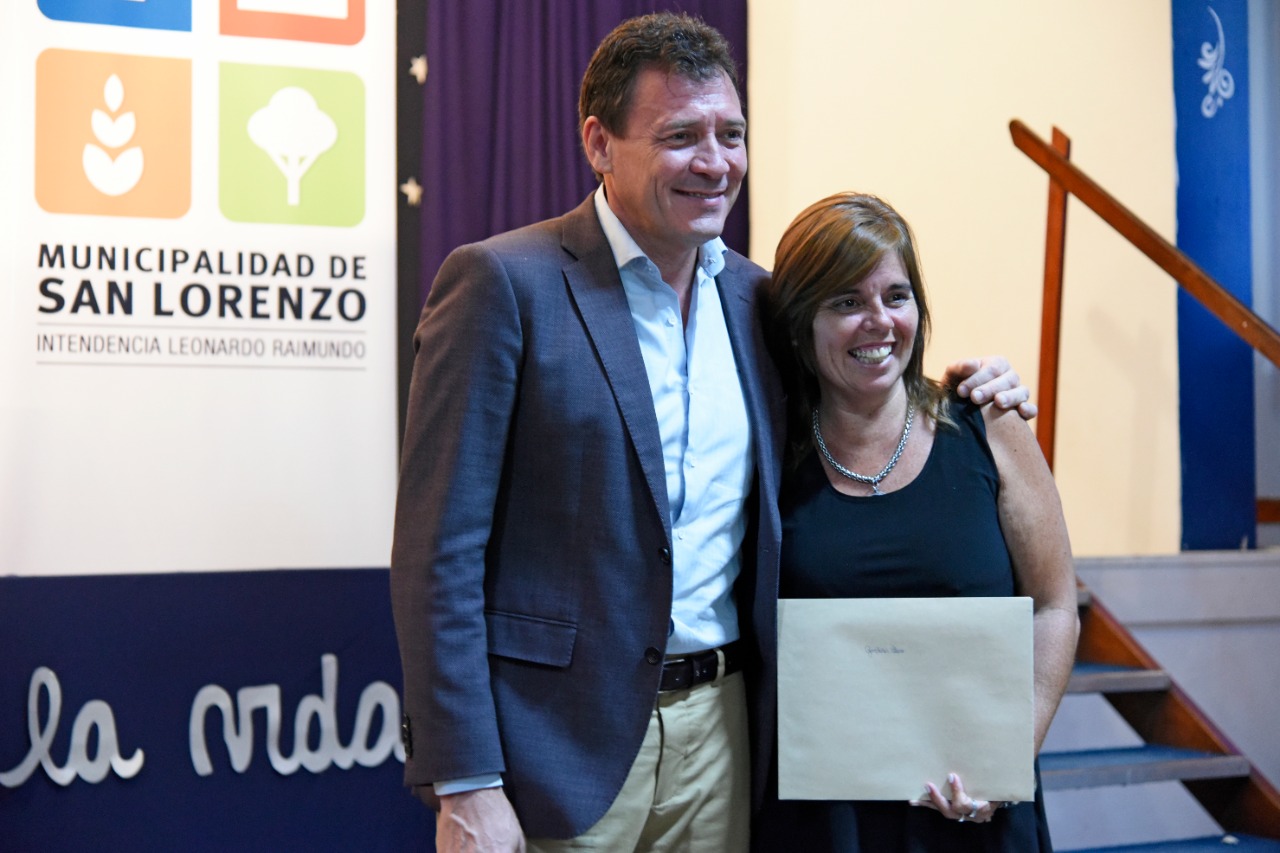 El sábado pasado en el salón de actos del colegio Santa Rosa de Viterbo, el intendente Leonardo Raimundo, acompañado por la concejal Andrea Soria, entregó certificados a las 140 docentes de todos los niveles que completaron la Diplomatura en Educación. El ciclo, gratuito, se dictó con el solvento de la Municipalidad de Municipalidad de San Lorenzo y la colaboración de la institución educativa, que prestó sus instalaciones.