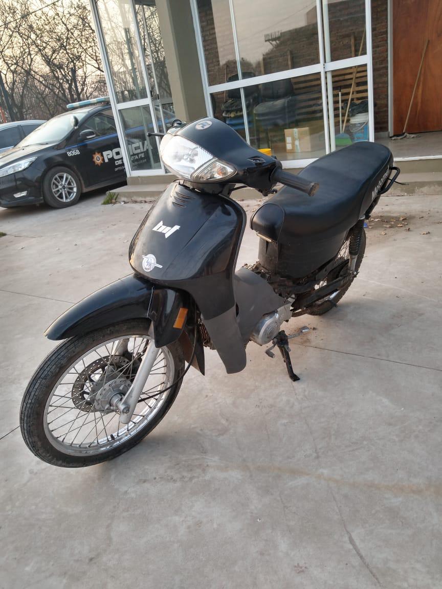 Fue trasladado a sede de la comisaría 5ta junto a la moto, que tenía había sido sustraída el 22 de agosto de este año en San Lorenzo al llamado S. Maximiliano en la intersección de las calles Escalada y Hugo del Carril. Además, se le secuestró un destornillador mango de madera 10 cm de largo y la hoja de 20 cm de largo con la punta limada.