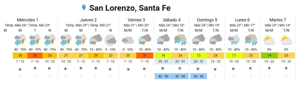 Este escenario marcaría el inicio de un paulatino descenso térmico, aunque en un contexto de inestabilidad que se extenderá durante los próximos días. Para el jueves, continuará el alerta amarillo por tormentas, con una mínima de 21°C y una máxima que descenderá a 29°C.