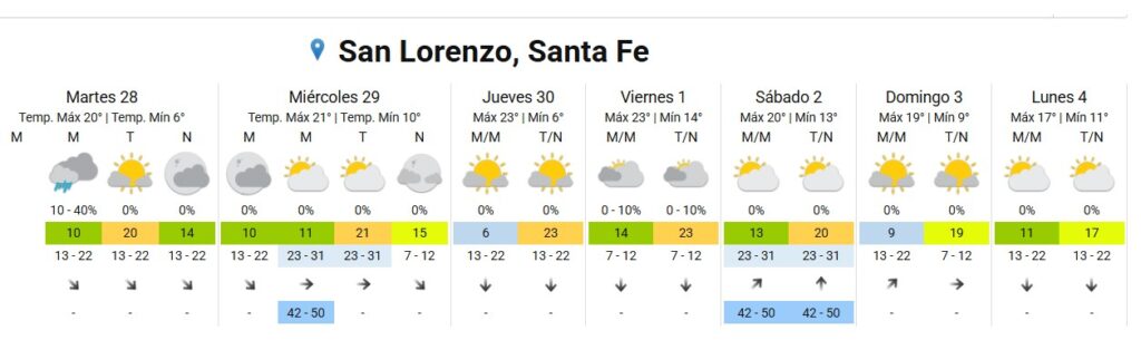 Finalmente, el viernes 1° de mayo llegará con condiciones ideales para el feriado: cielo algo nublado, mínima de 14 grados y una máxima de 23, consolidando un cierre de semana estable y con temperaturas en ascenso.
