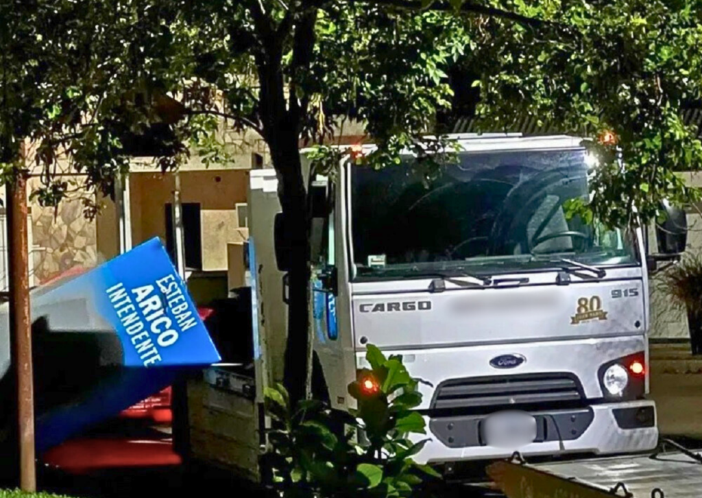 Donde debía funcionar un comedor comunitario, había un bunker de campaña de un candidato del ex gobernador. Los vecinos filmaron el retiro de afiches y carteles cuando vaciaban el lugar.