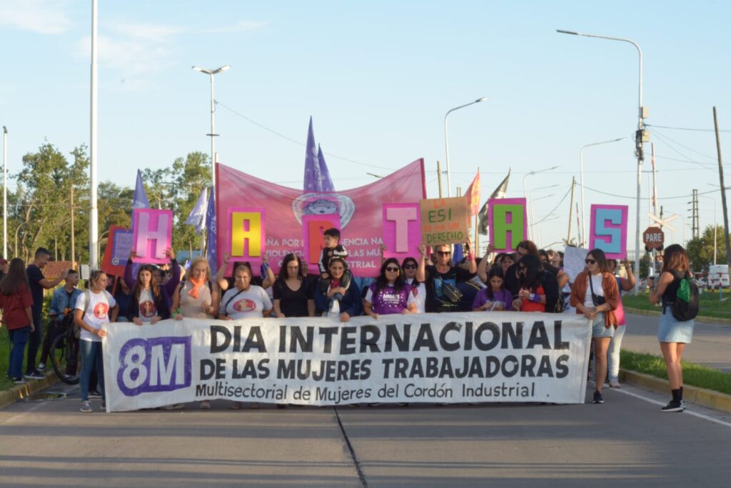 En el marco del Día Internacional de las Mujeres Trabajadoras, organizaciones sindicales, sociales, políticas y feministas que componen la Multisectorial del Cordón Industrial protagonizaron este sábado una movilización en San Lorenzo, Santa Fe, Argentina para visibilizar reclamos vinculados a derechos laborales, igualdad de género y políticas públicas.
