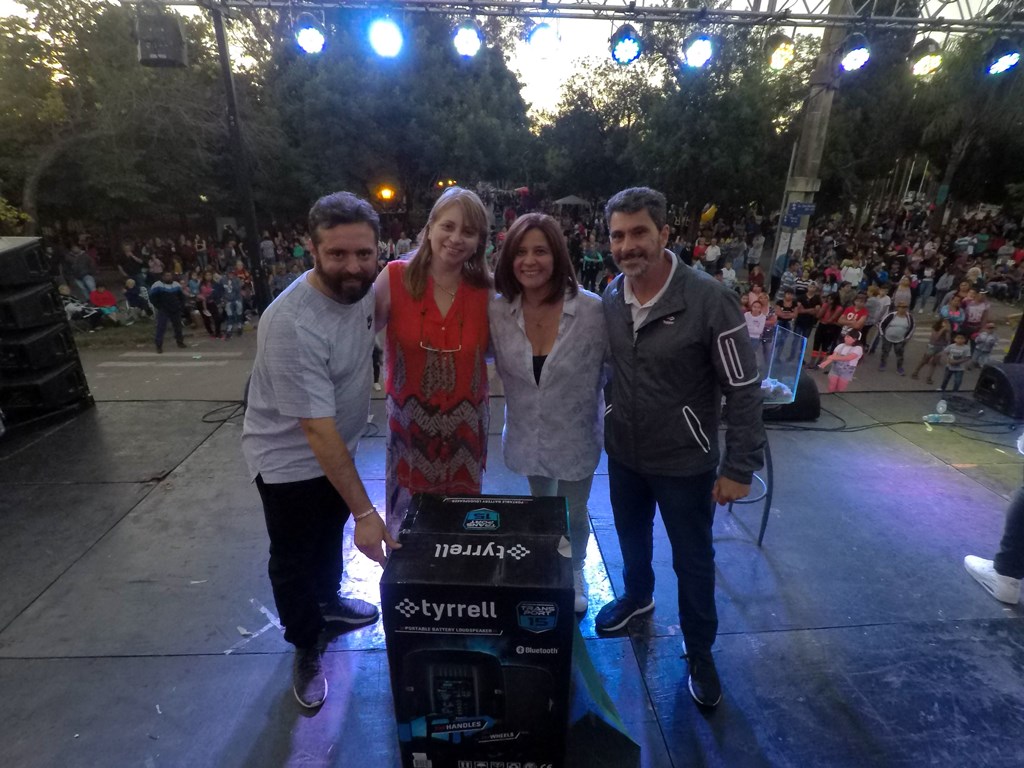 Los concejales justicialistas realizaron el sorteo desde el escenario de premios como camisetas del mes aniversario, un parlante inalámbrico, un radio grabador y una bicicleta. Cerca de las 20 h , el humorista Carlos García subió al escenario para despertar las carcajadas con sus historias y canciones. Más tarde fue el turno de The Panas, que brindó un show cargado de éxitos, y toda la alegría que despierta el grupo en cada presentación.