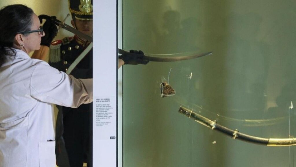El operativo se desarrolló bajo estrictas medidas de seguridad y conservación, y fue documentado a través de imágenes oficiales difundidas por Presidencia de la Nación, donde se observa el retiro del sable y su traslado en un estuche especialmente diseñado para preservar la pieza histórica.