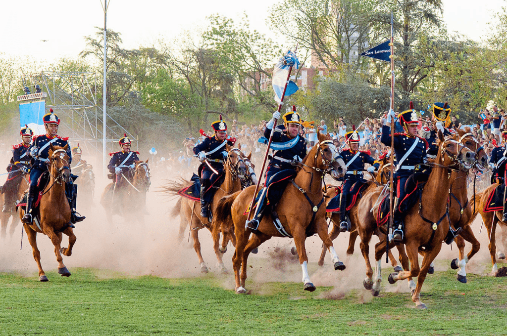 Las actividades conmemorativas habían comenzado más temprano, con izamientos en la plaza San Martín y en el Pino Histórico, así como con la colocación de una ofrenda en el cementerio donde descansan los granaderos caídos en combate.
