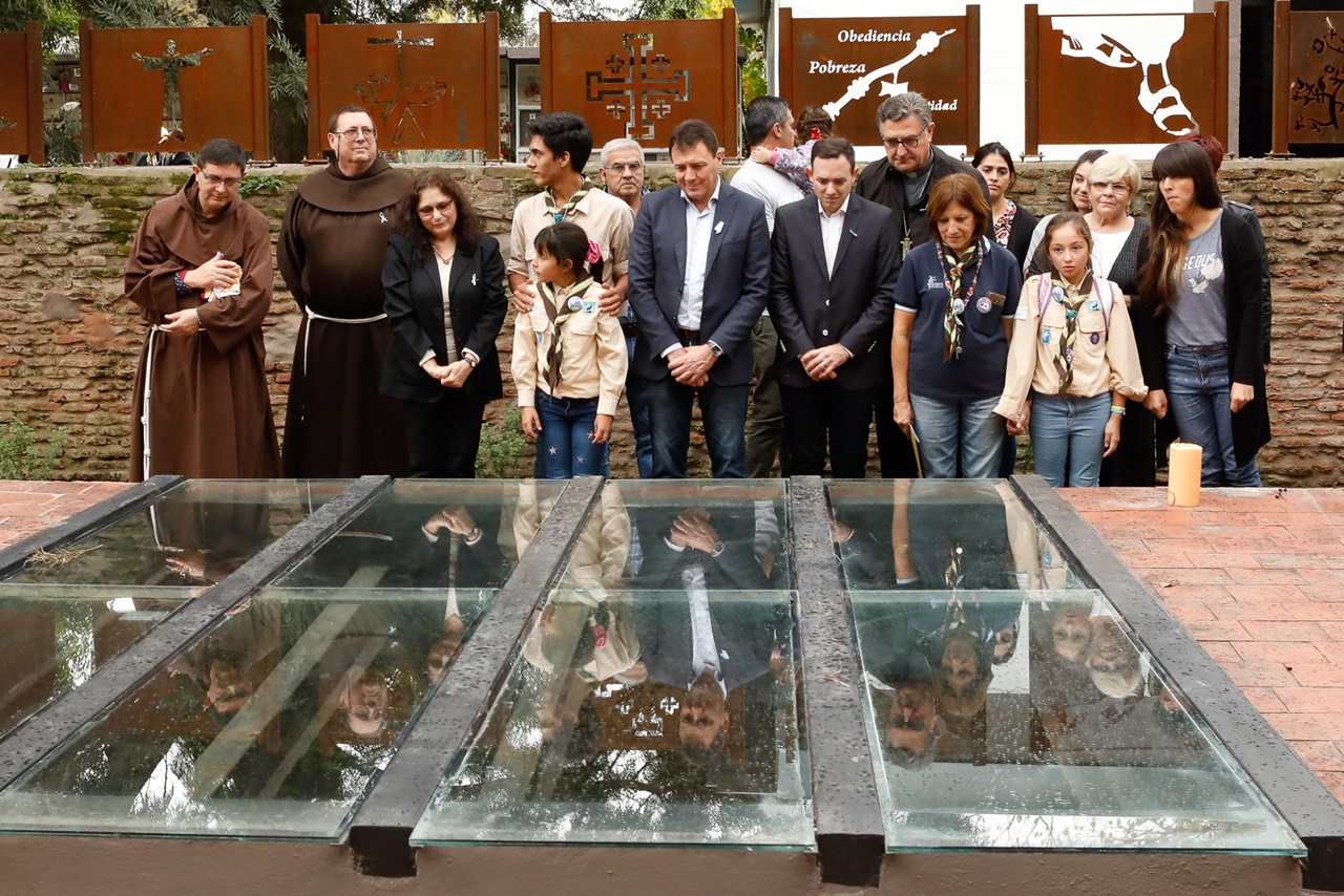 Luego se efectuó un minuto de silencio y el descubrimiento de la placa que dejó inaugurado el memorial, a cargo del primer mandatario local; el presidente del Concejo, Hernán Ore; el guardián del convento, Raúl Piazza; María Inés Chiodín y el Obispo de la Arquidiócesis de Rosario, Eduardo Eliseo Martín, quien además bendijo el sitio.