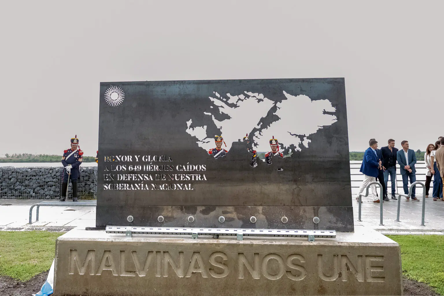 La escultura se emplaza en el Campo de la Gloria, a espaldas del río Paraná. Fue descubierta este jueves en el marco de una serie de actividades en conmemoración del Día del Veterano y de los Caídos en la Guerra de Malvinas. “Son argentinas por geografía, geología e historia”, sostuvo el intendente Raimundo en el acto desarrollado en el colegio San Carlos.