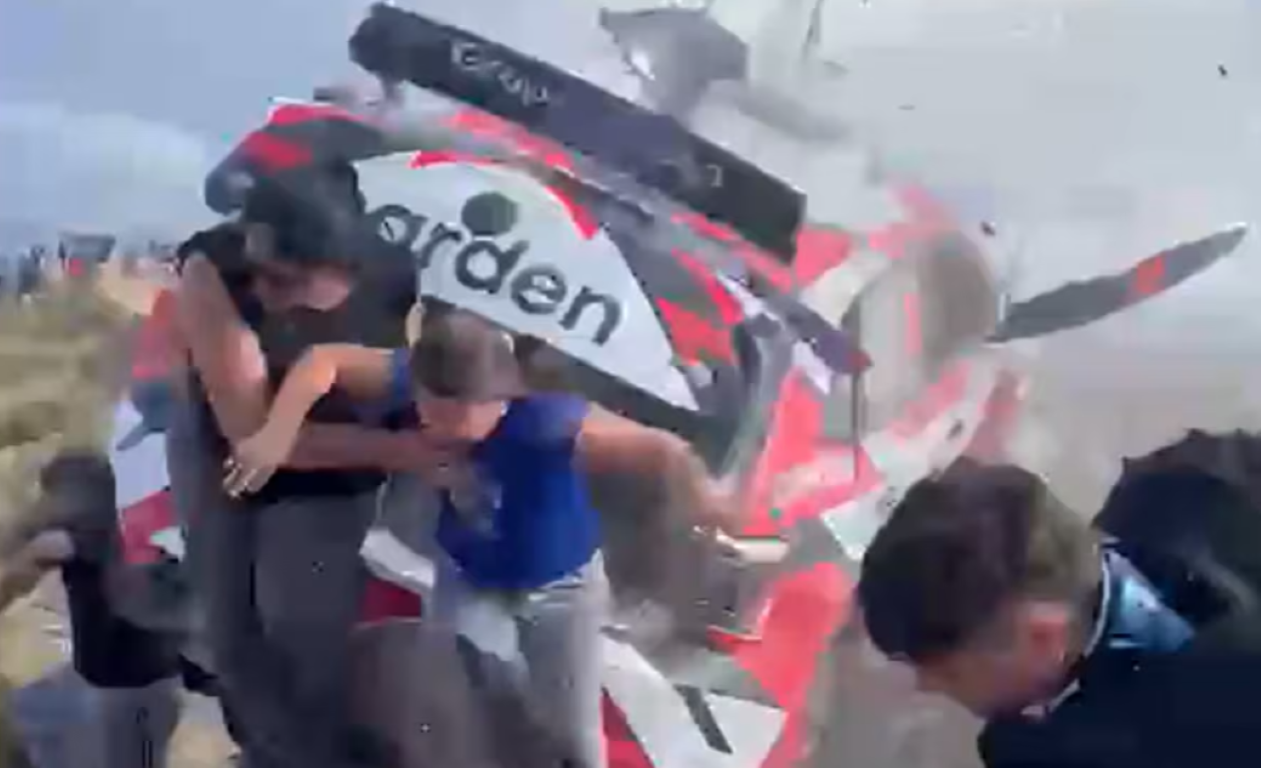 El accidente ocurrió en el paraje Giulio Cesare, durante la mañana del domingo. Según las primeras investigaciones, el vehículo perdió el control, se despistó y se estrelló contra dos personas que se encontraban mirando la competencia a un costado del camino.
