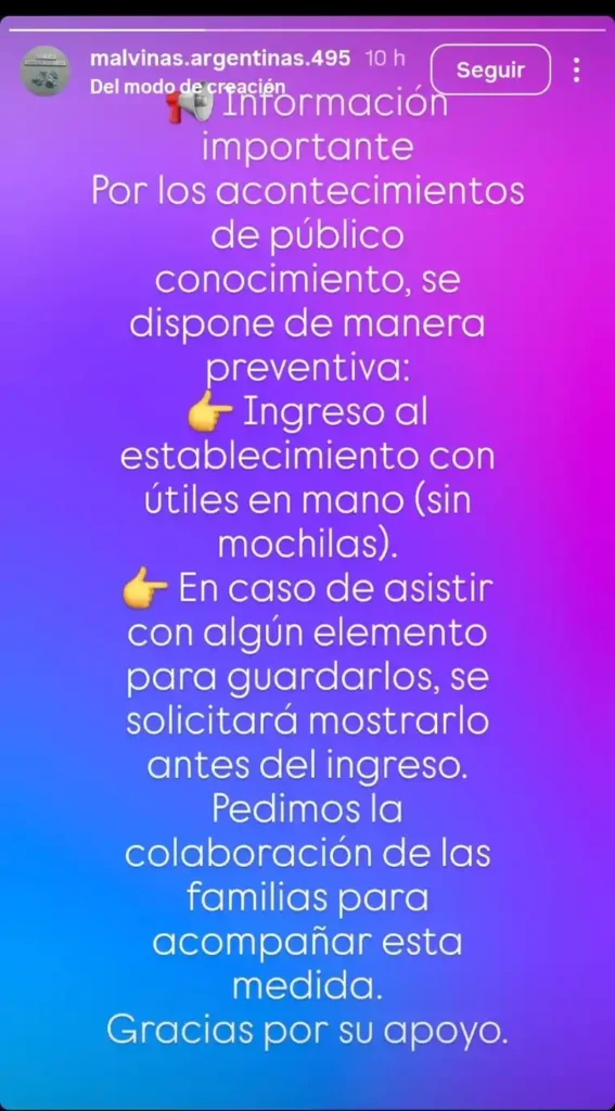En este contexto, la Escuela Secundaria Técnica “Malvinas Argentinas” de Rafaela emitió un comunicado a través de sus redes sociales informando nuevas disposiciones para el ingreso de los estudiantes.