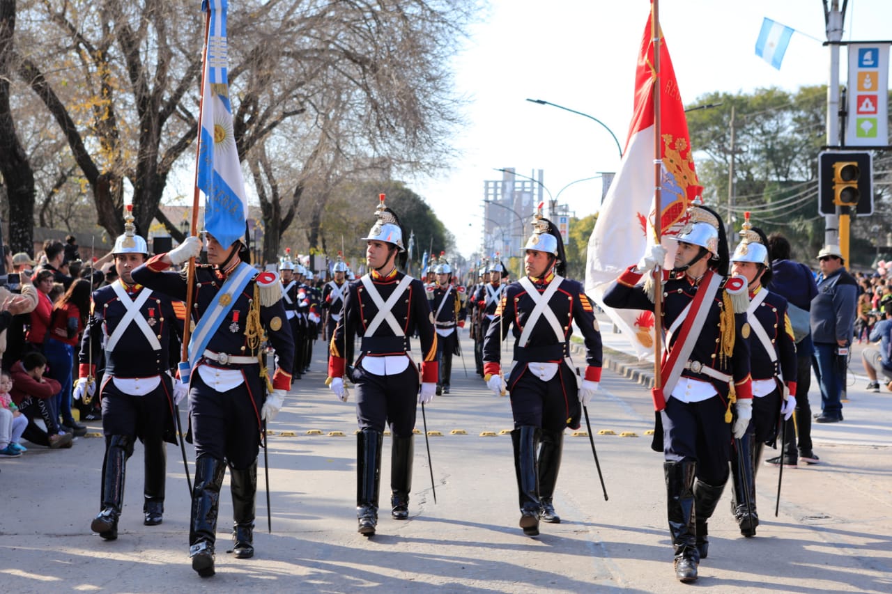 El tradicional desfile se desplegó por el bulevar Sargento Cabral, con nutrida presencia de agrupaciones cívicas y militares. A su cierre, el público y las autoridades se trasladaron al Campo de la Gloria, donde se desplegaron una serie de atracciones.